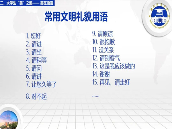 除去外表的直观感受,美好的语言能最快让人体会到美。良言一句三冬暖,恶语伤人六月寒。日常的文明用语和说话的艺术都很重要。
