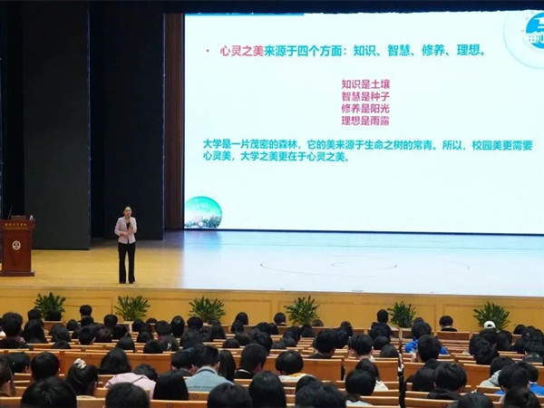 2023年3月7日晚上7点,我校于塘湾湖大剧院开展了“向美而行,以美润心——大学生‘美’之道”讲座。